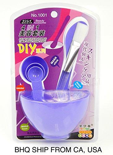 4 in 1 DIY Facial Face Mask Tool Set Mixing Bowl Brush Stick Spoon Make Up Tools, Purple