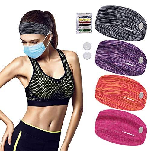 1. Headbands with buttons for Face Masks and Covers 2. Stretchy Elastic Button Headband 3. Button Headband Facemask Holder for Nurses, Doctors, and Everyone Wearing a Mask - Protect Your Ears with this Headband. (Headband can be used at sport, yoga, running, hiking or daily wear. Sweat wicking, dry quickly, keep the sweat from running down into your eyes, allows your head to always stay cool and dry, you can enjoy the interesting and comfy workout).