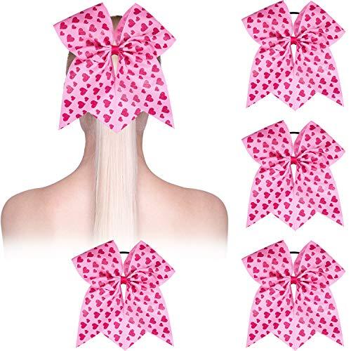 Features:\nThese bows is approx. 7 inch (18 cm) width by 3 inch (7.5 cm) grosgrain ribbon, glued with approx. 6 inch (15 cm) circumference elastic.\n\nThese girls hair bows are beautiful, easy to put them in thin hair and don\'t slide out. They are bright, adorable and trendy.\n\nBoutique ribbon cheer hair bow accessories designed for young girls women of all ages, you can easily match every outfit.\n\nGreat gift for baby photo props, hospital gifts, baby shower gifts, birthdays, Valentine\'s parties, school, church or just because you know an adorable little girl who needs to be spoiled.\n\nPackage includes:\n4 Pack large bow hair tie