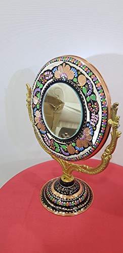 Price : $ 44.99 This product is completely hand craftsmanship Length : 13.7 inches (35 cm). This one-sided design cosmetic vanity mirror ( Back side is copper) Tabletop stand makeup mirror.