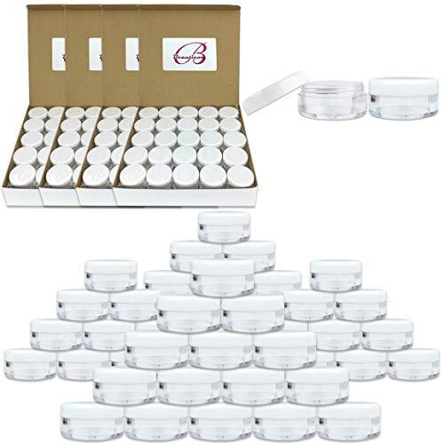 - [USES]: Perfectly use for cosmetic product, facial cream, mud mask, eye cream,blusher and other body skin care product and makeup items. suitable for personal and professional use. Thicken bottom of each container effectively to avoid break and have good stability, transparent jar wall convenient for you identify items inside. You can easily clean these durable container with warm soapy water or wipe down. These are great because it can be reused as many time as desirable.