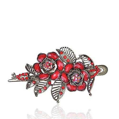 1 x Vintage Red Rose Flower Rhinestone Hair Clip